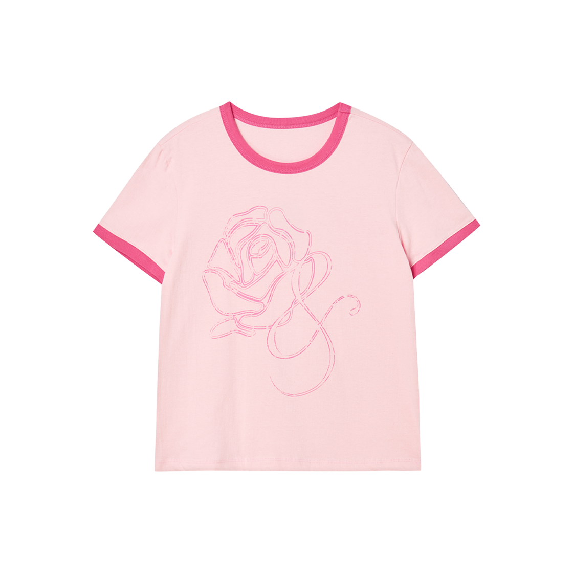 로긴 앤 로지 로즈플라워 프린티드 링거티셔츠 핑크