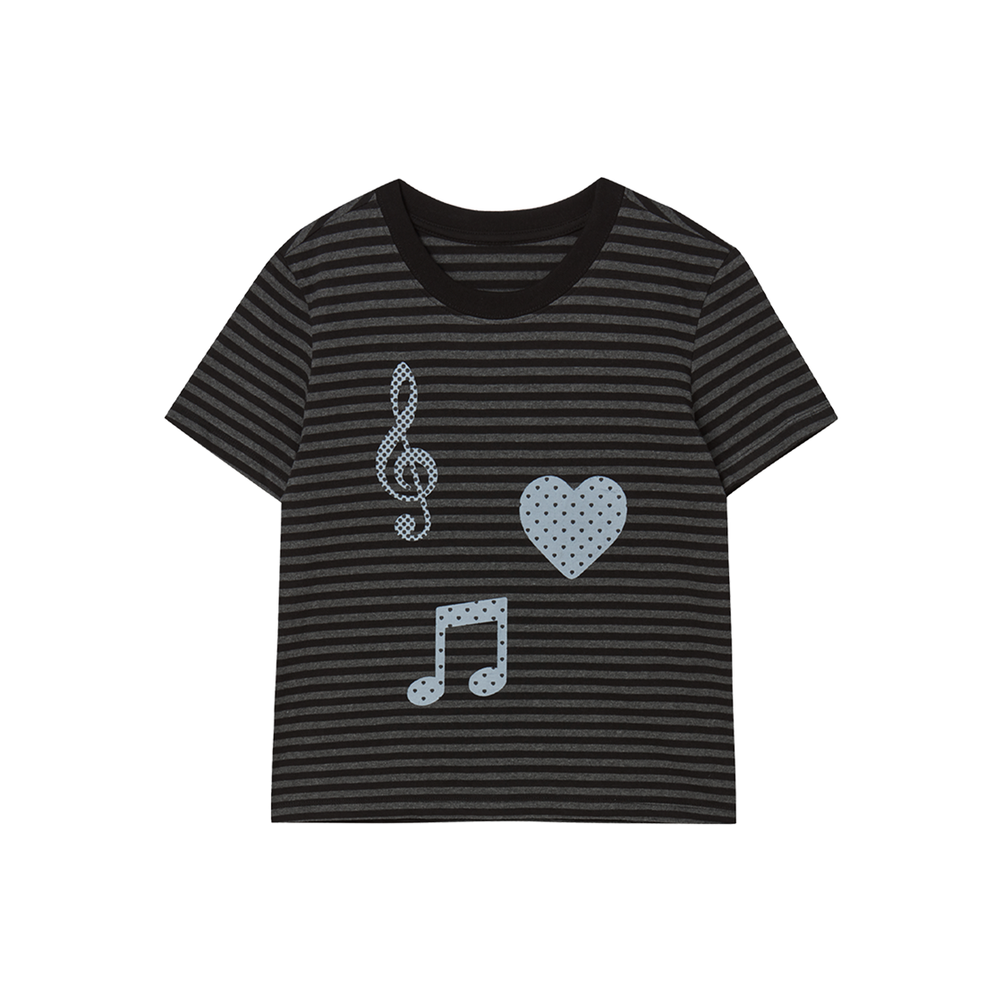 로긴 앤 로지 멜로디 하트 스트라이프 티셔츠 차콜그레이