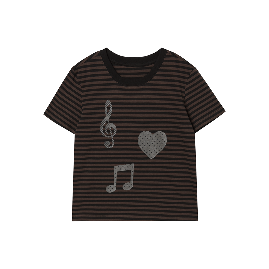 로긴 앤 로지 멜로디 하트 스트라이프 티셔츠 블랙브라운