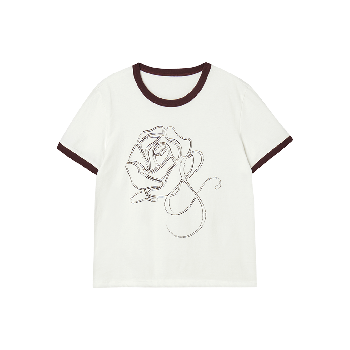 로긴 앤 로지 로즈플라워 프린티드 링거티셔츠 화이트