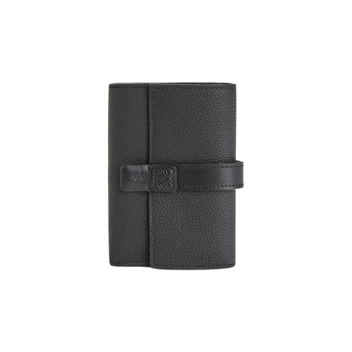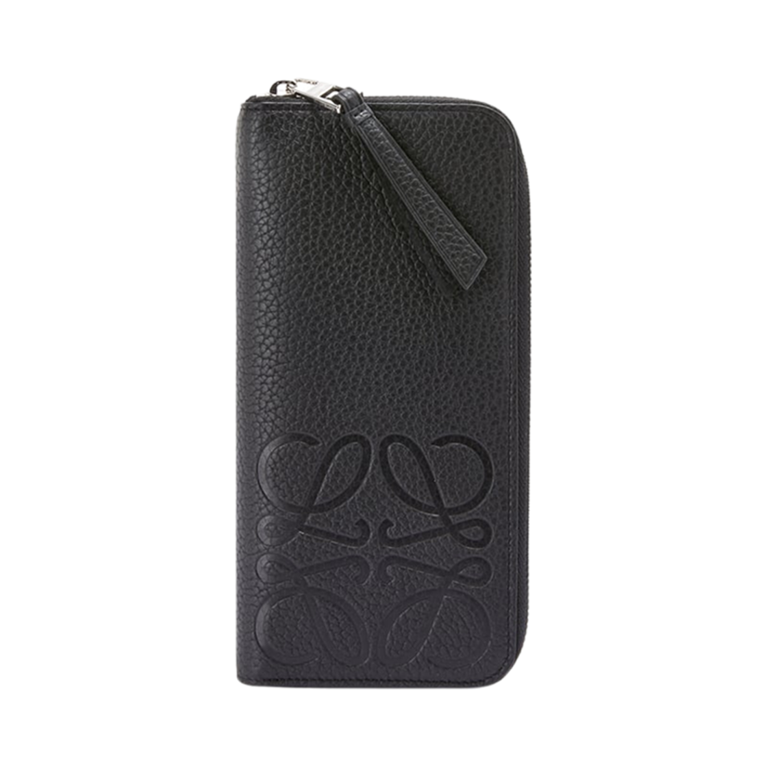 로에베 페블 그레인드 카프스킨 아나그램 스몰 버티컬 월렛 블랙