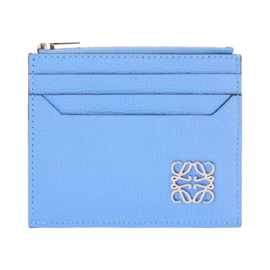 로에베 페블 그레인 카프스킨 아나그램 스퀘어 지퍼 카드 홀더 셀레스틴 블루