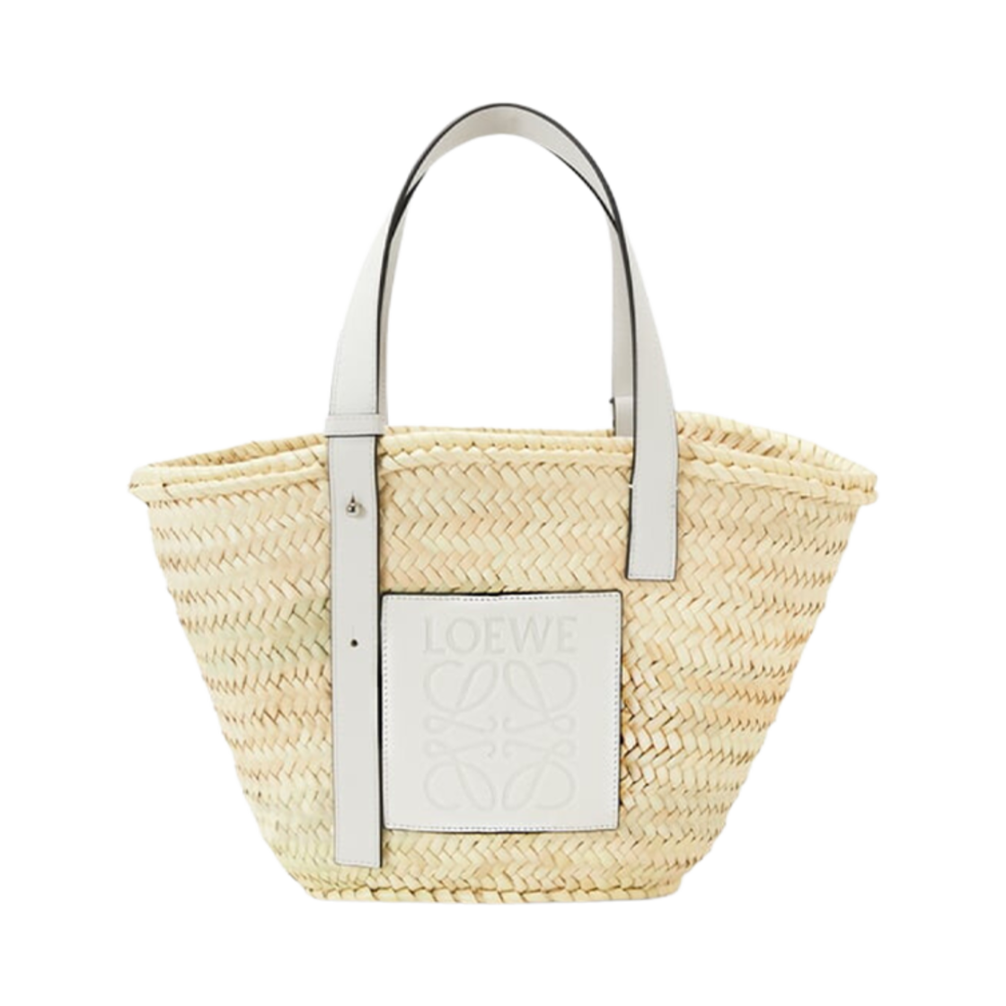 로에베 베스킷백 인 팜 리프 앤 카프스킨 내츄럴 화이트