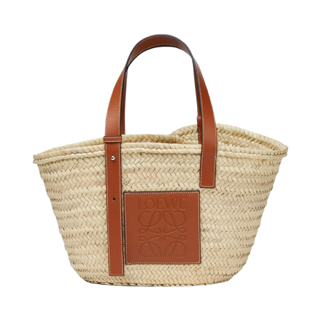 로에베 베스킷백 팜 리프 앤 카프스킨 내츄럴 탄