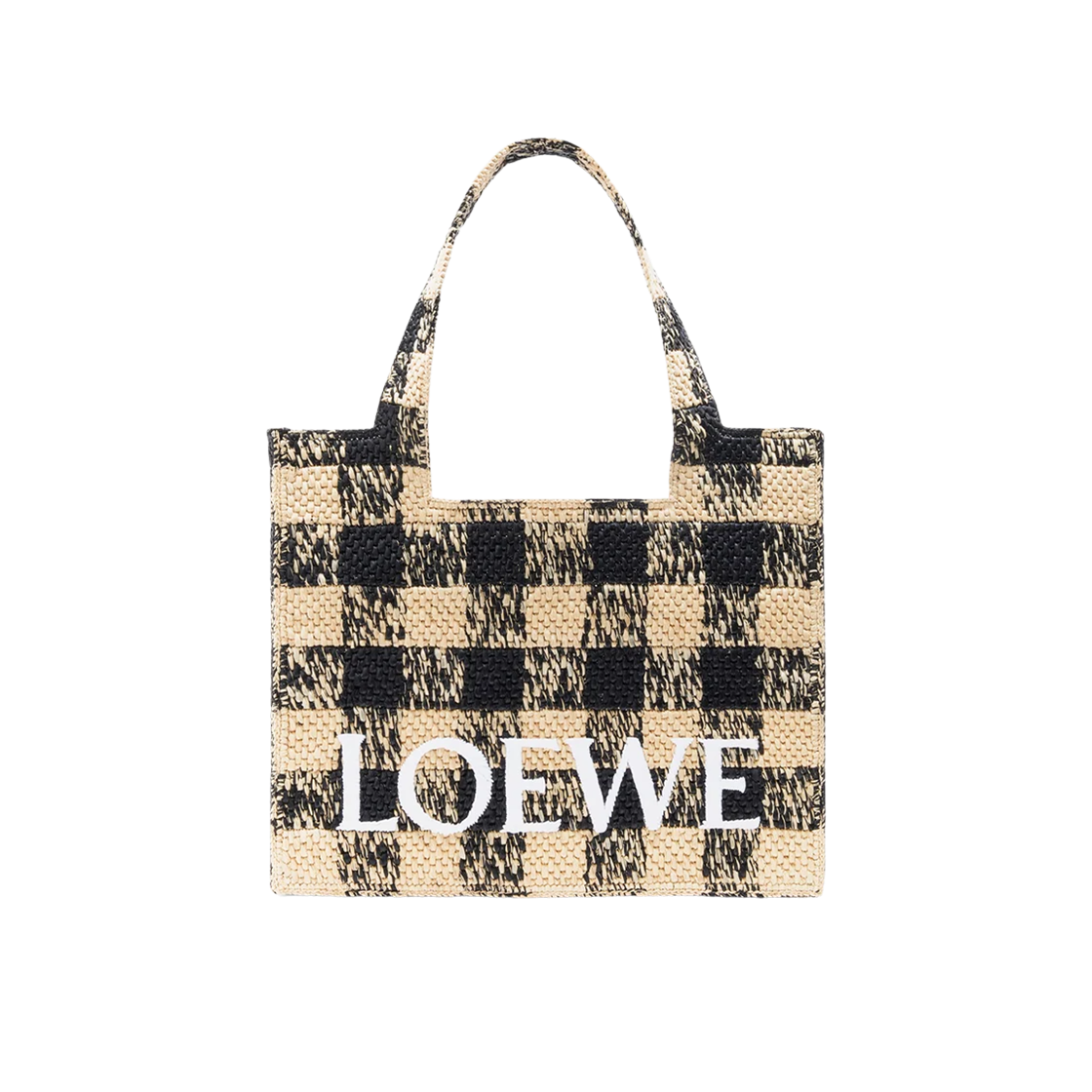 로에베 스탠다드 A5 토트백 인 라피아 내츄럴 블랙