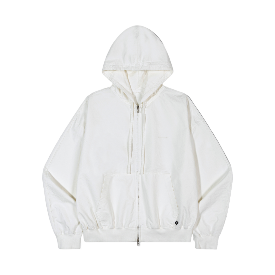 (W) 로우클래식 워시드 코튼 집업 후디 화이트