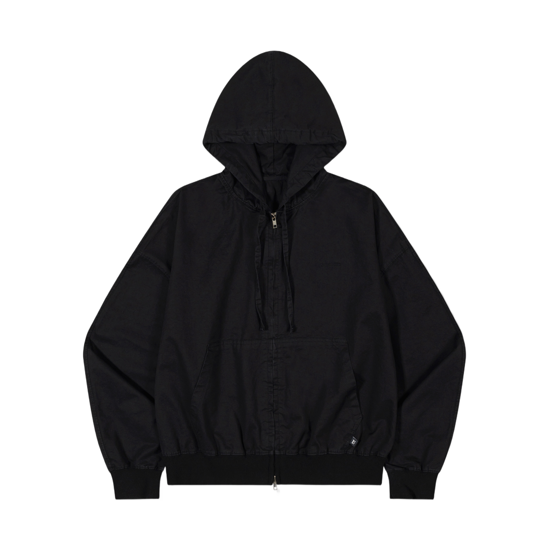 (W) 로우클래식 워시드 코튼 집업 후디 블랙