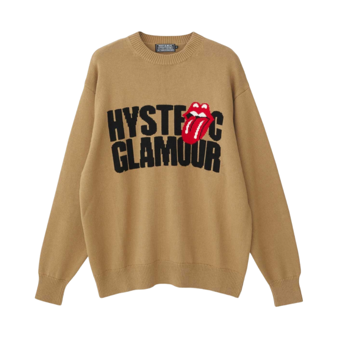 히스테릭 글래머 x 더 롤링 스톤즈 히스테릭 로고 & 텅 니트 스웨터 베이지
