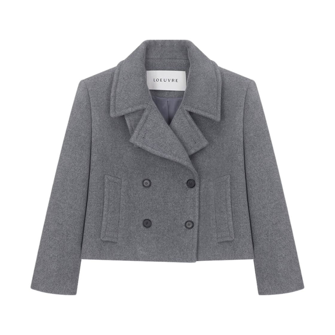 (W) 루에브르 크롭 울 프린지 피 코트 멜란지 그레이