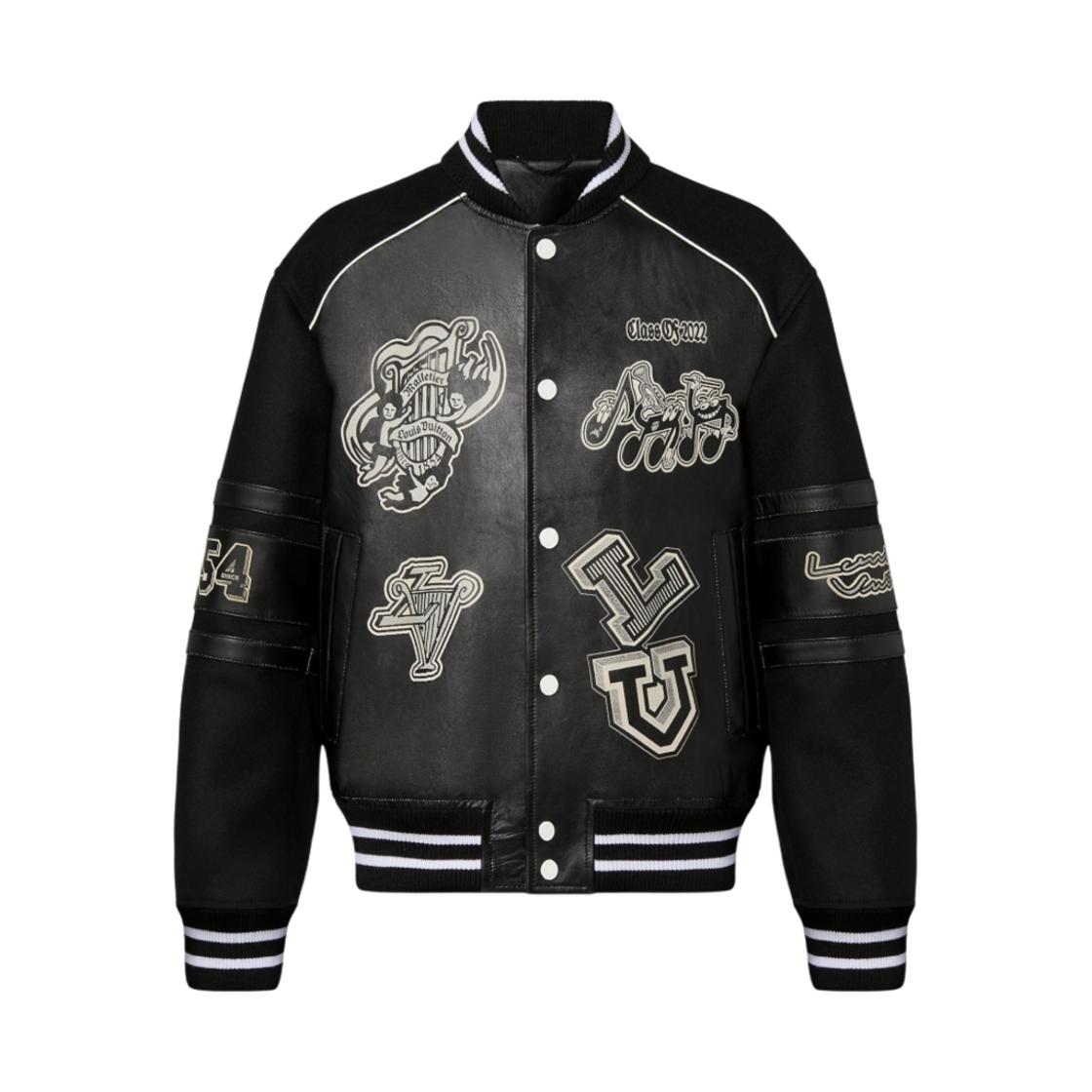 루이비통 레더 자수 바시티 자켓 블랙