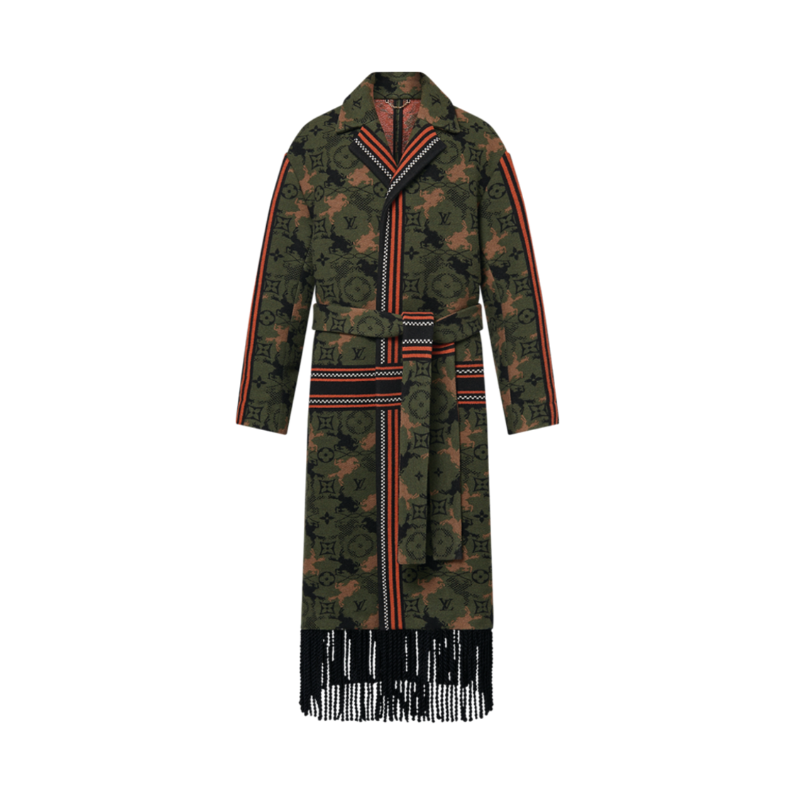 루이비통 자카드 더블 페이스 울 블랭킷 코트 라이플 그린