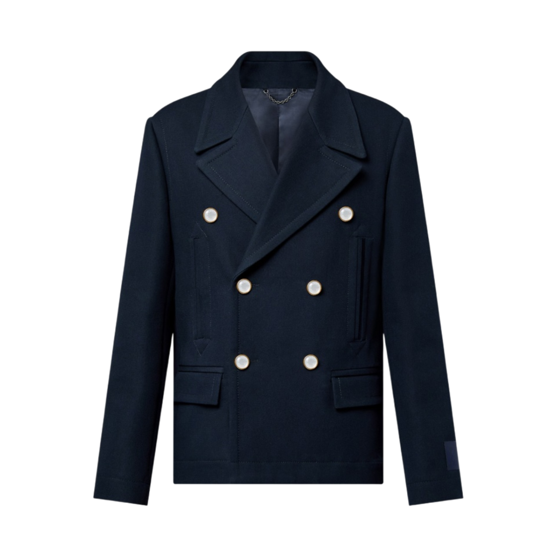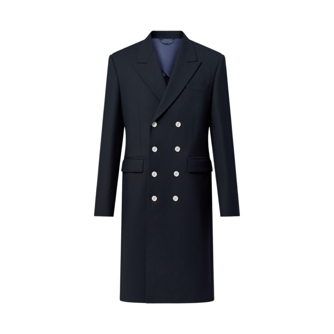 루이비통 더블 브레스티드 테일러드 울 블렌드 코트 네이비 블루