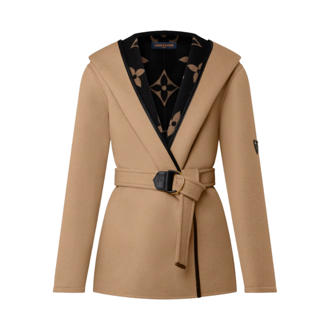 (W) 루이비통 시그니쳐 숏 후드 랩 코트 카라멜