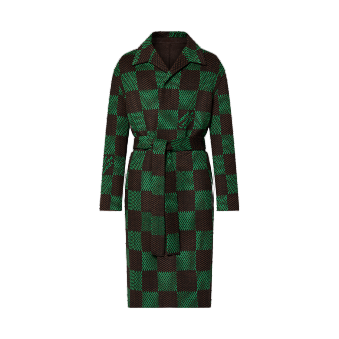 루이비통 다미에 더블 페이스 울 믹스 벨티드 코트 졸리 그린
