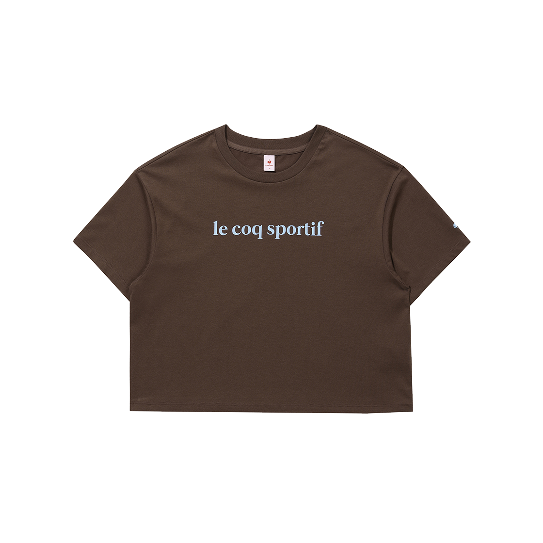 르꼬끄 스포르티브 여성 에슬레저 루즈핏 면 크롭 반팔티 - 브라운(QQ322ORS83)