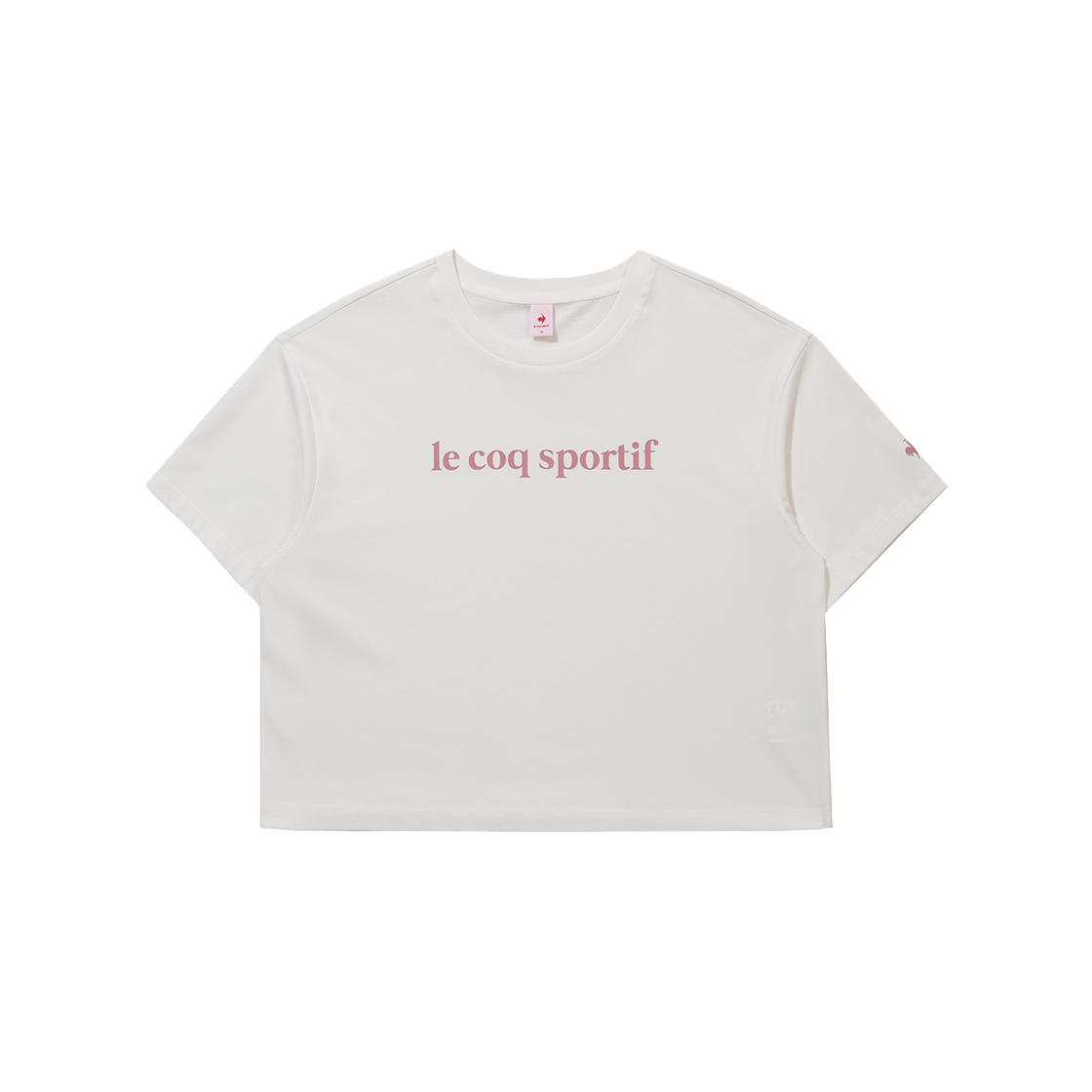 르꼬끄 스포르티브 여성 에슬레저 루즈핏 면 크롭 반팔티 - 아이보리(QQ322ORS83)