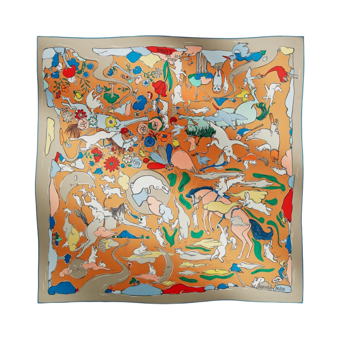 (W) 에르메스 밀레앙 라핀스 스카프 90 그리 끌레어 베쥬 도레 멀티꼴로르