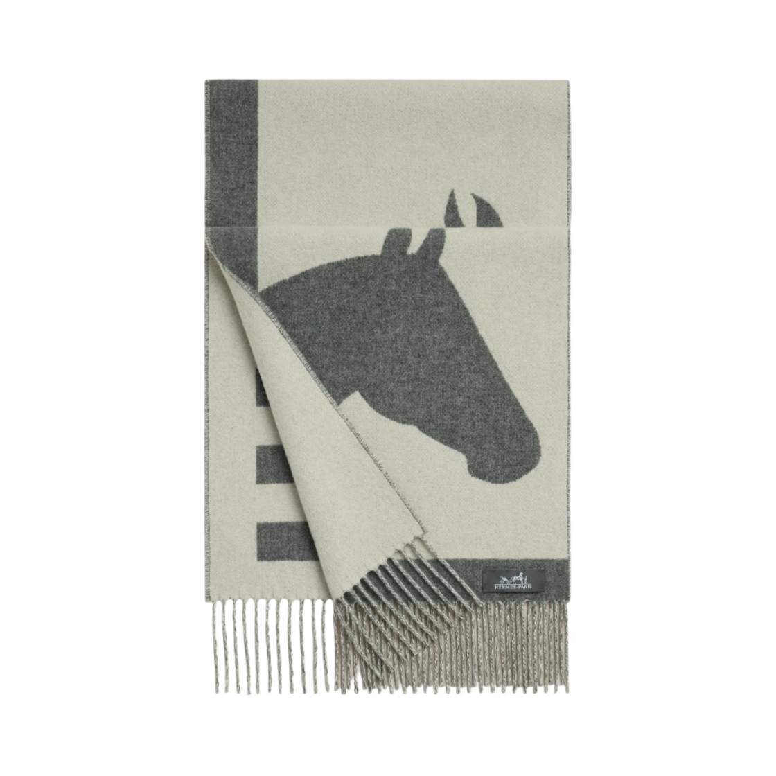 (W) 에르메스 르 필라뗄리스트 뒤 포부르 스카프 90 그리 파쉐민 블랑
