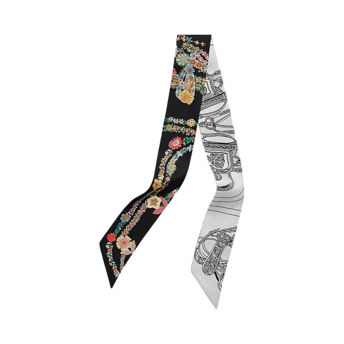 (W) 에르메스 브라이드 드 갈라 엔 플뢰르 트윌리 누아 멀티꼴로르 블랑