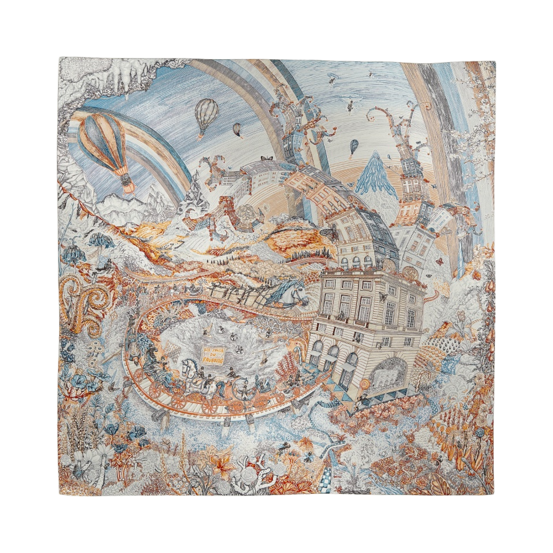 (W) 에르메스 르 카나발 데 아니모 스카프 90 블루 진 베르 베쥬