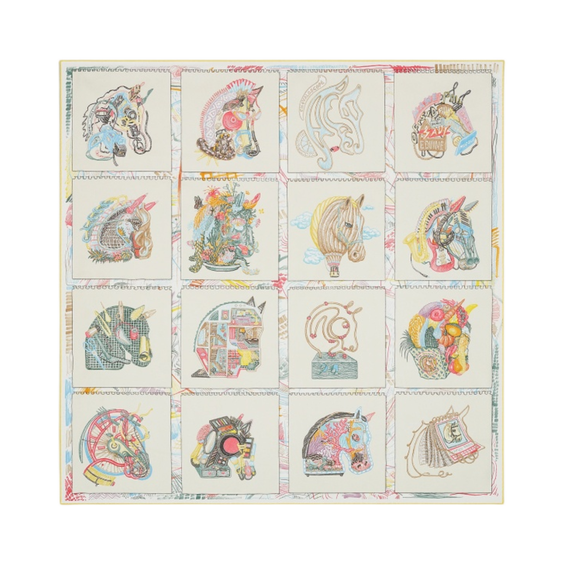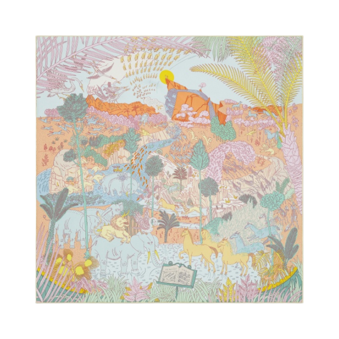 (W) 에르메스 그랜드 아파랏 포에버 스카프 90 크렘 골드 멀티꼴로르