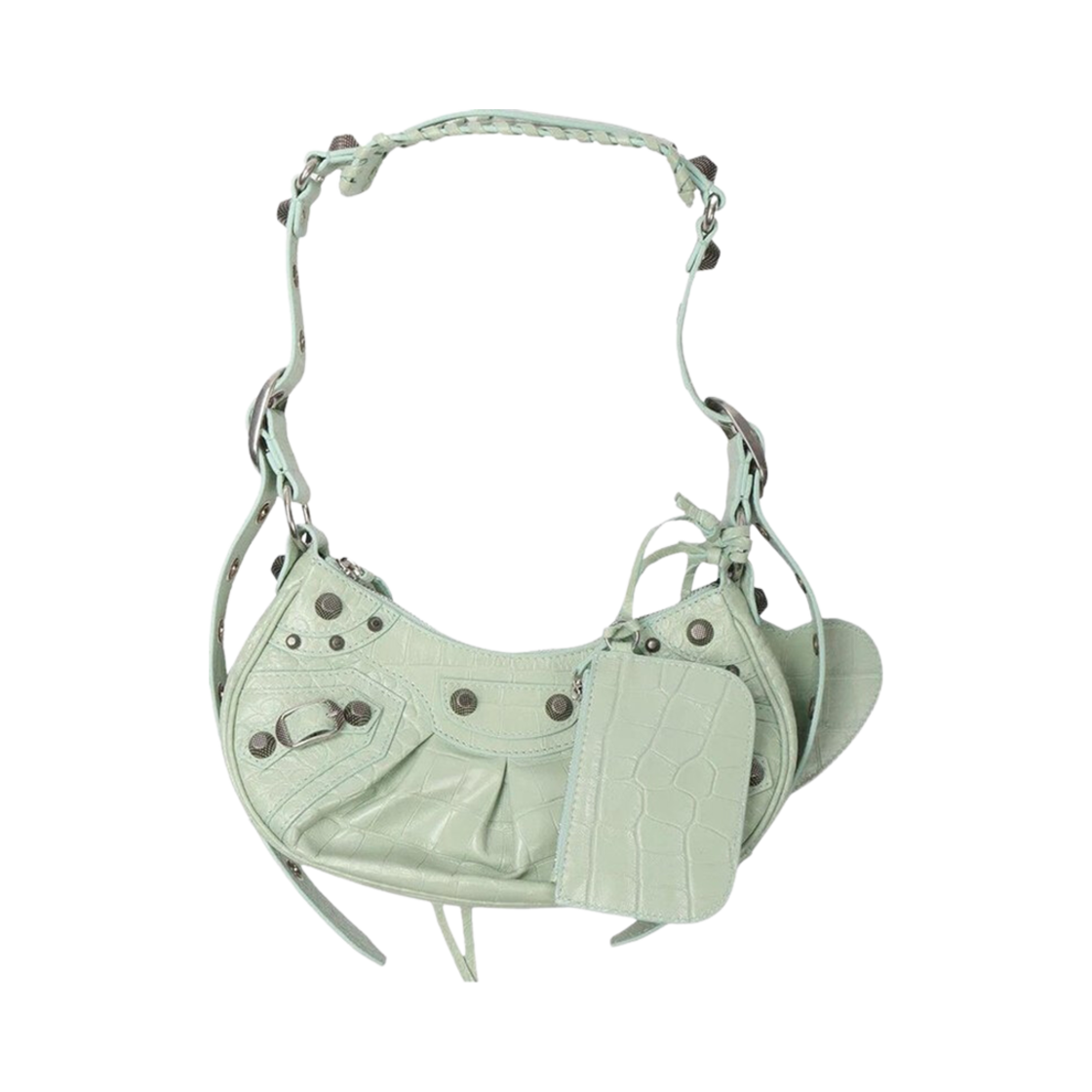 발렌시아가 크로커다일 엠보스 카프스킨 르 카골 XS 숄더백 라이트 그린