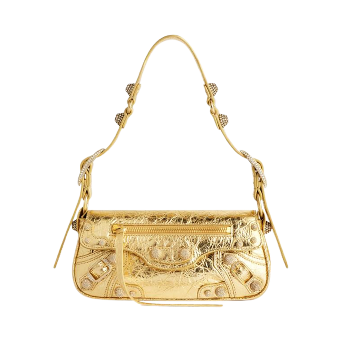발렌시아가 르 카골 XS 슬링 백 메탈라이즈드 로고 라인스톤 골드