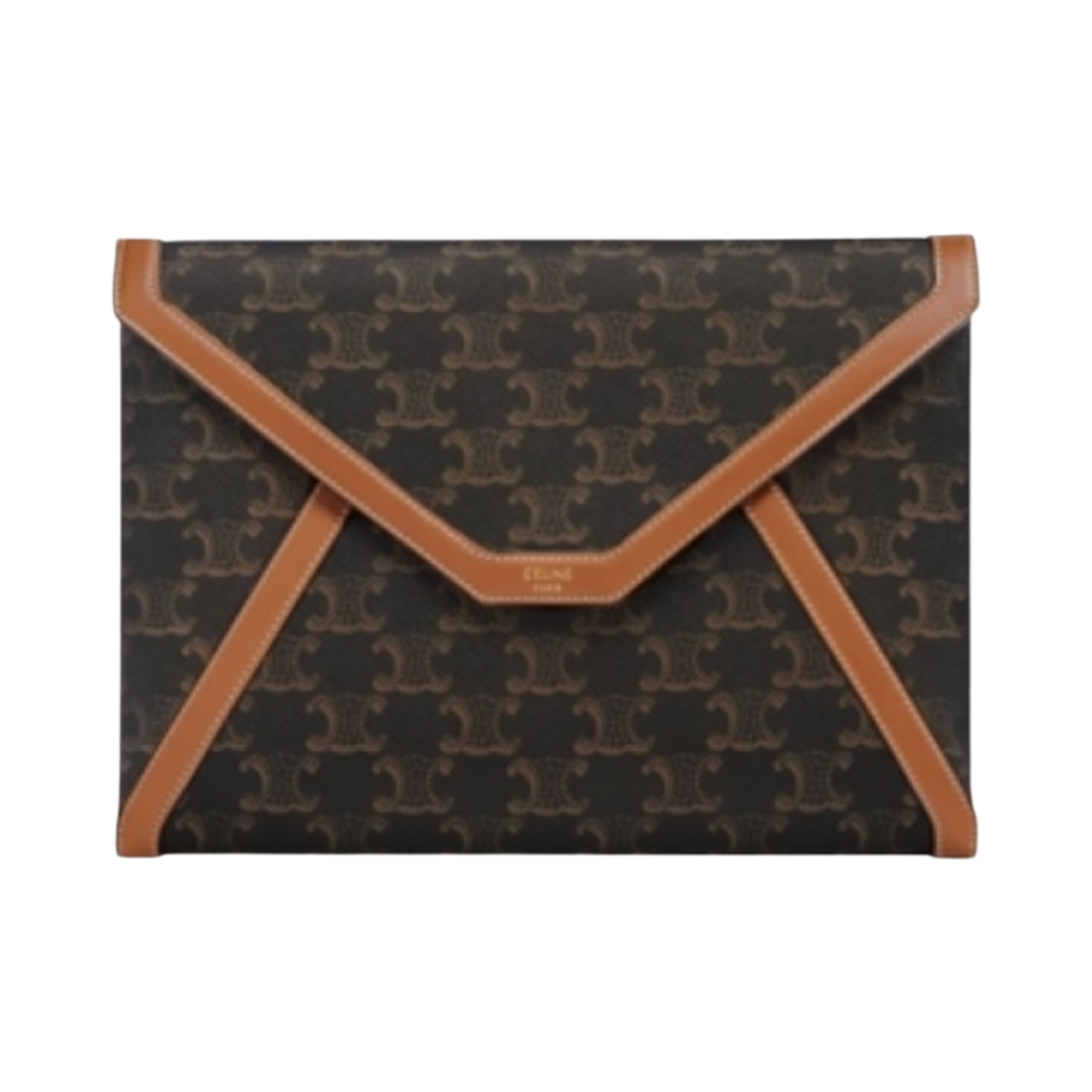 셀린느 트리옹프 캔버스 & 카프스킨 엔벨로프 스몰 파우치 탄