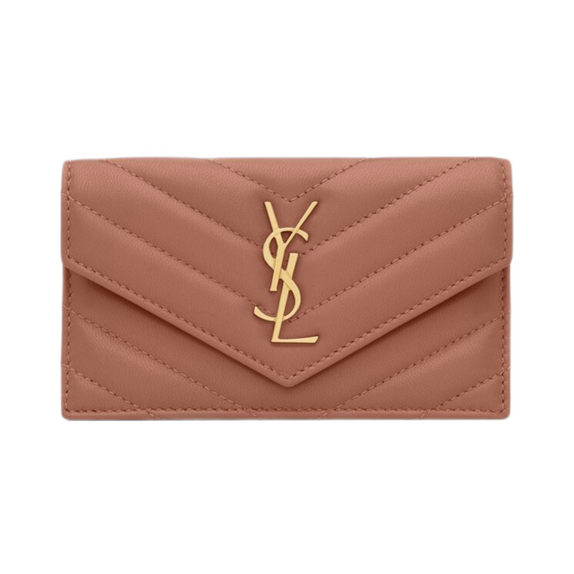 생로랑 카산드라 프라그망 플랩 카드 케이스 램스킨 베얼리 핑크
