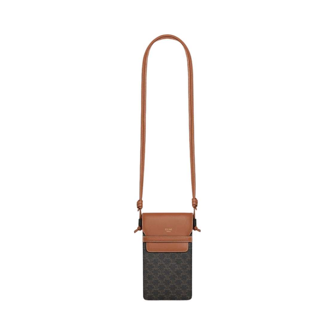 셀린느 트리옹프 캔버스 & 램스킨 플랩 폰 파우치 탄