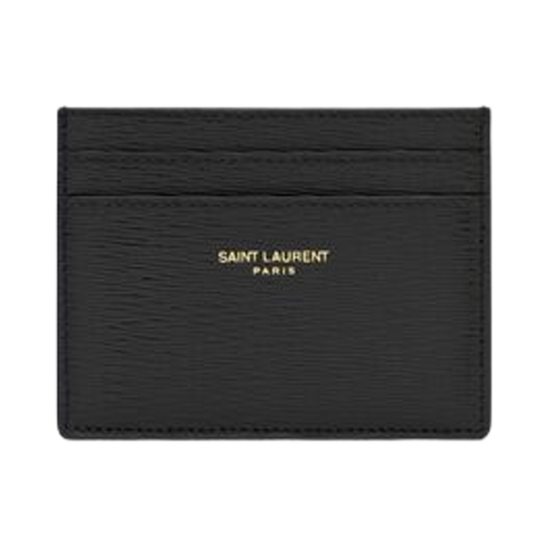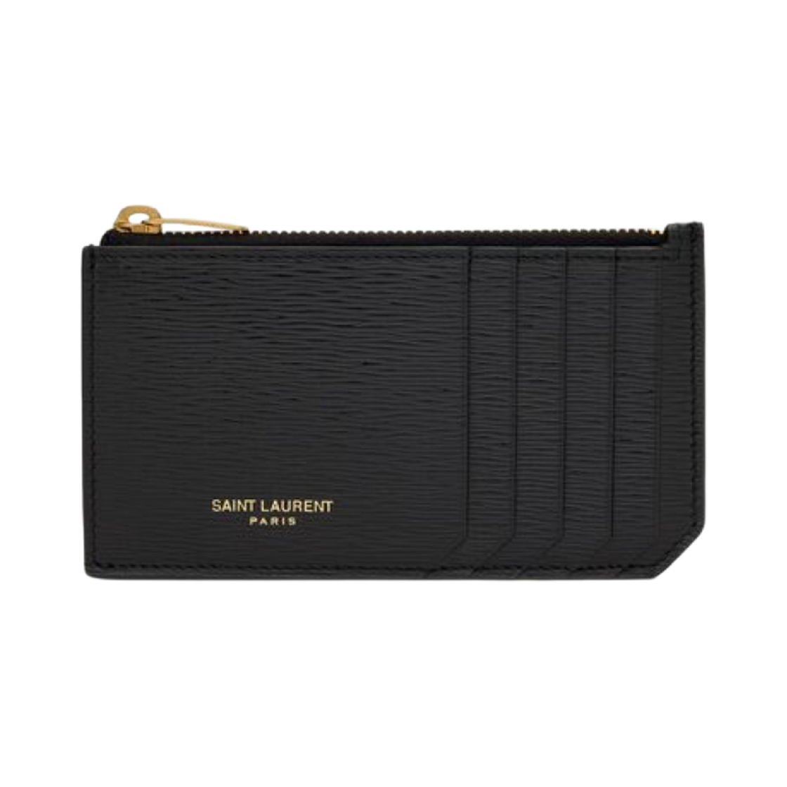 생로랑 프라그먼트 지퍼 카드 케이스 리플 엠보스드 레더 블랙