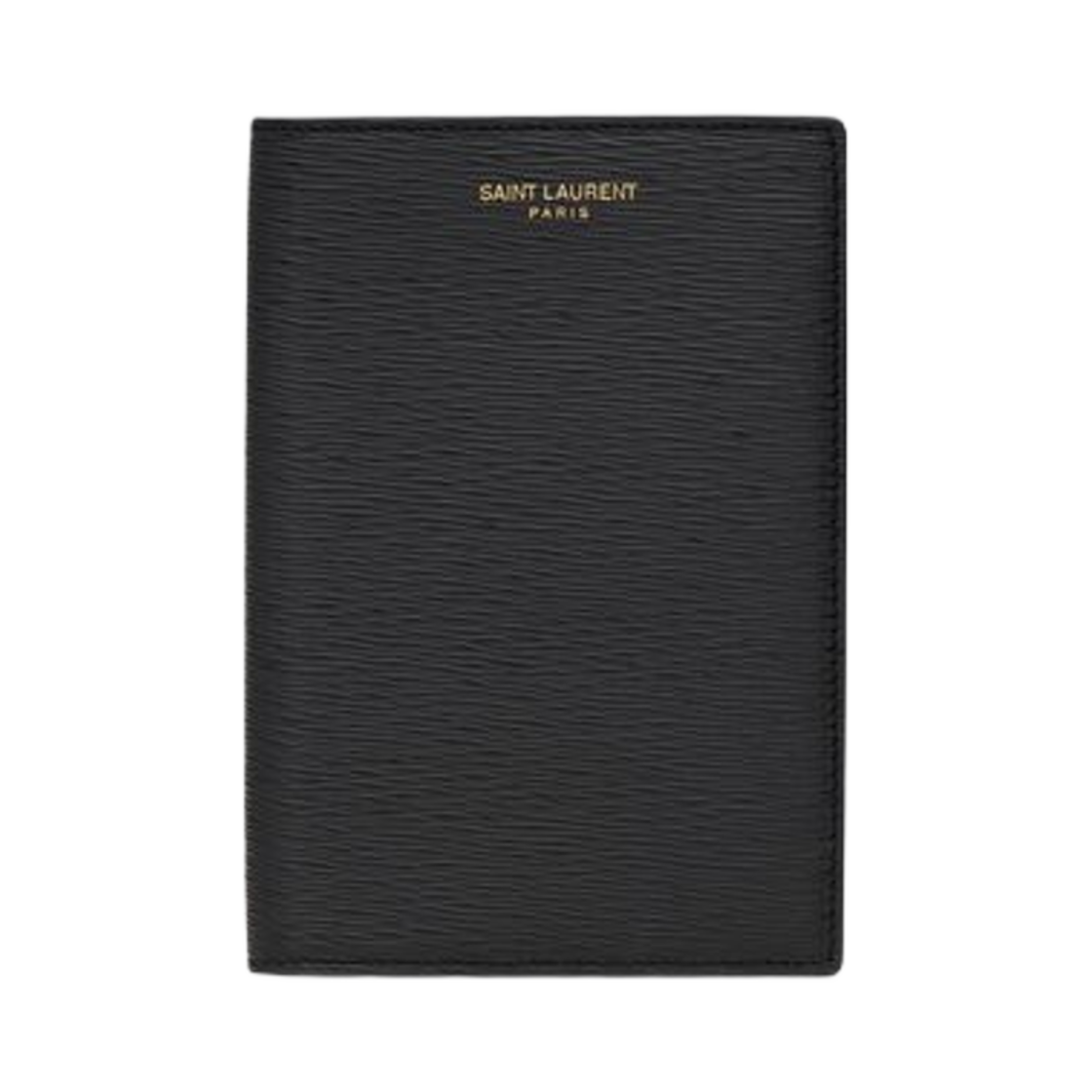 생로랑 파리 패스포트 케이스 리플 엠보스 레더 블랙