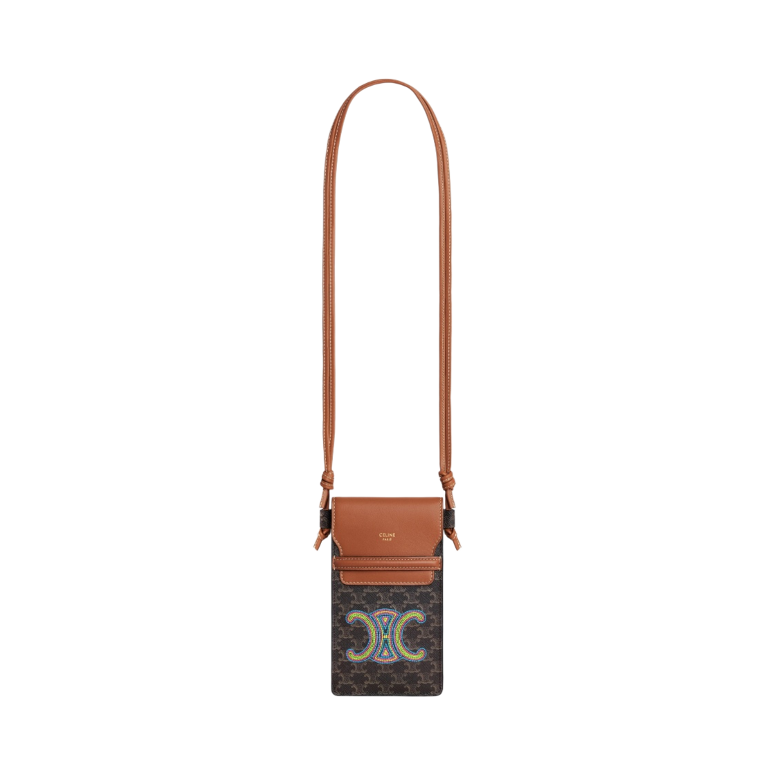 셀린느 트리옹프 캔버스 트리옹프 자수 플랩 폰 파우치 멀티컬러