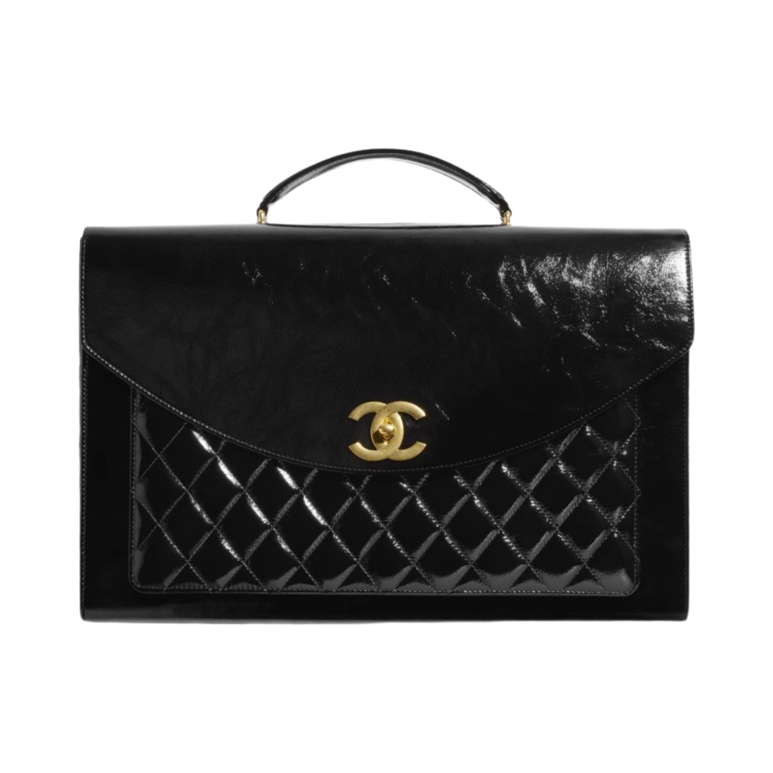 샤넬 브리프케이스 페이턴트 크럼플드 램스킨 & 골드 메탈 블랙