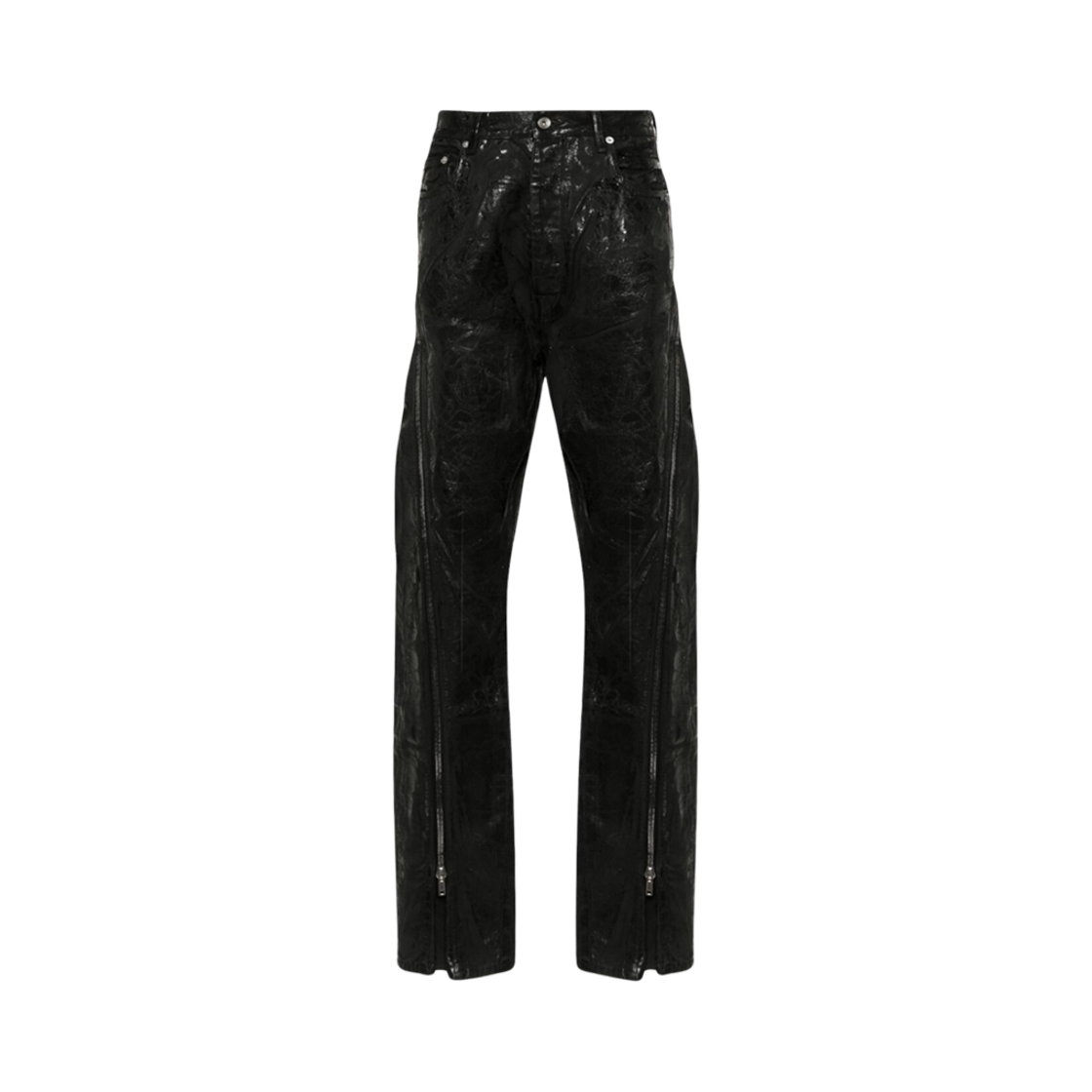 릭 오웬스 다크쉐도우 왁스 스트레치 데님 콘코디언 마스토돈 컷 팬츠 블랙