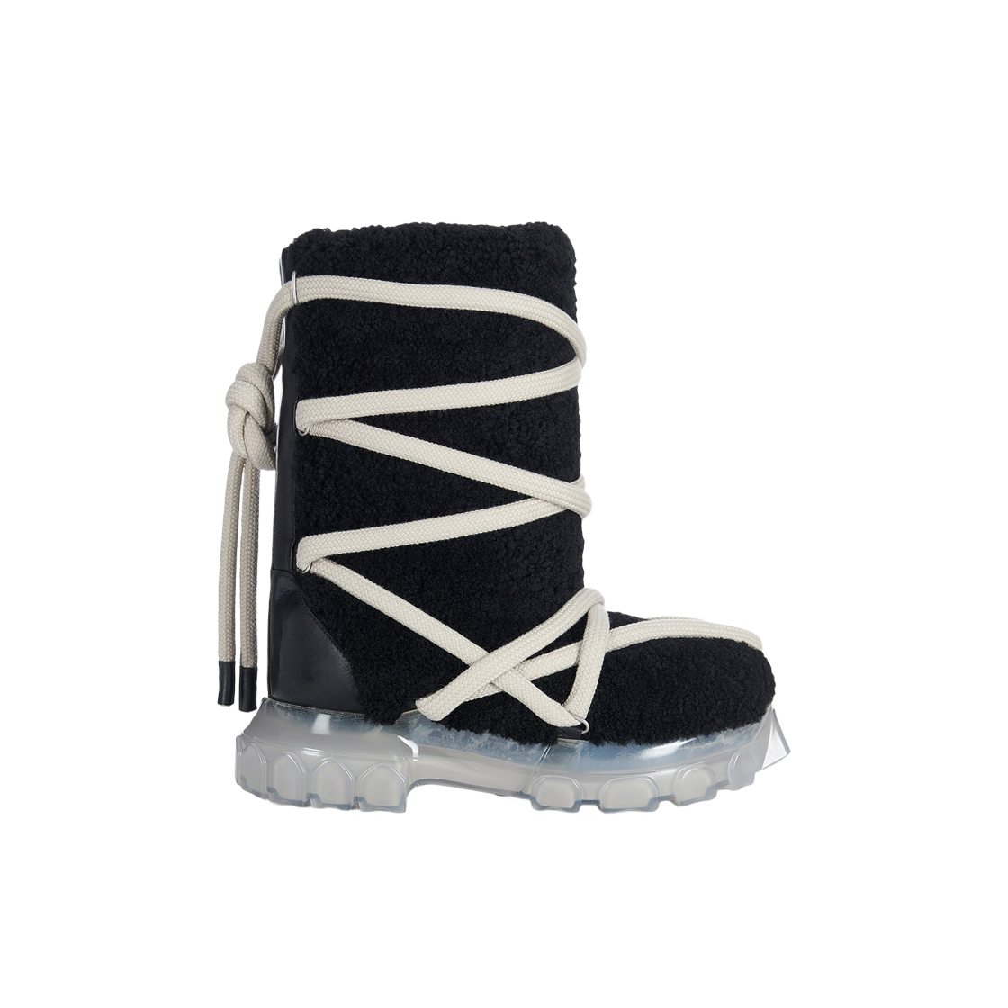 릭 오웬스 램 셔링 리얼 퍼 룩소르 루나 트랙터 부츠 블랙 클리어