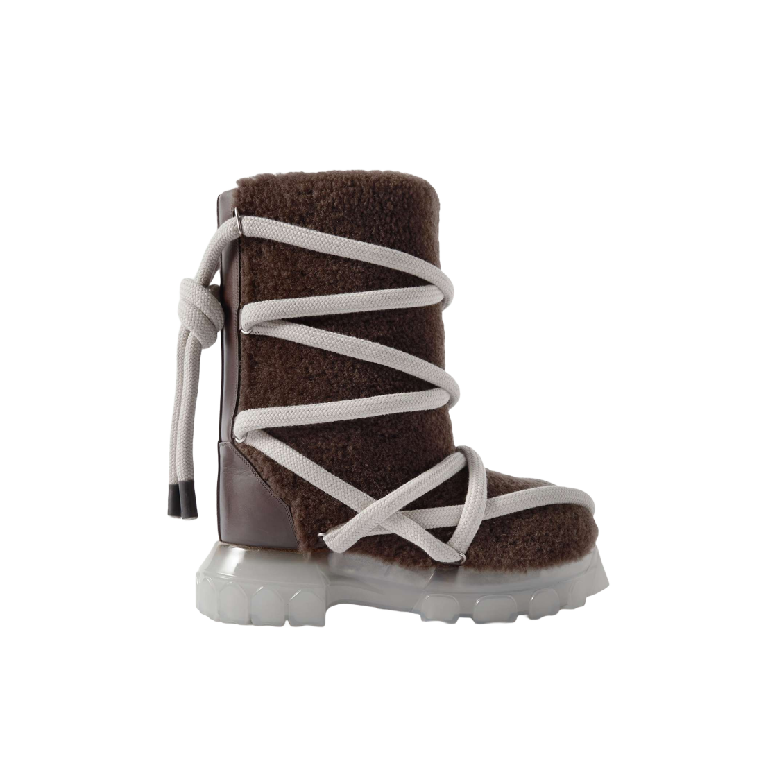 릭 오웬스 레더 트림드 셔링 루나 트랙터 레더 트리밍 셔링 부츠 브라운