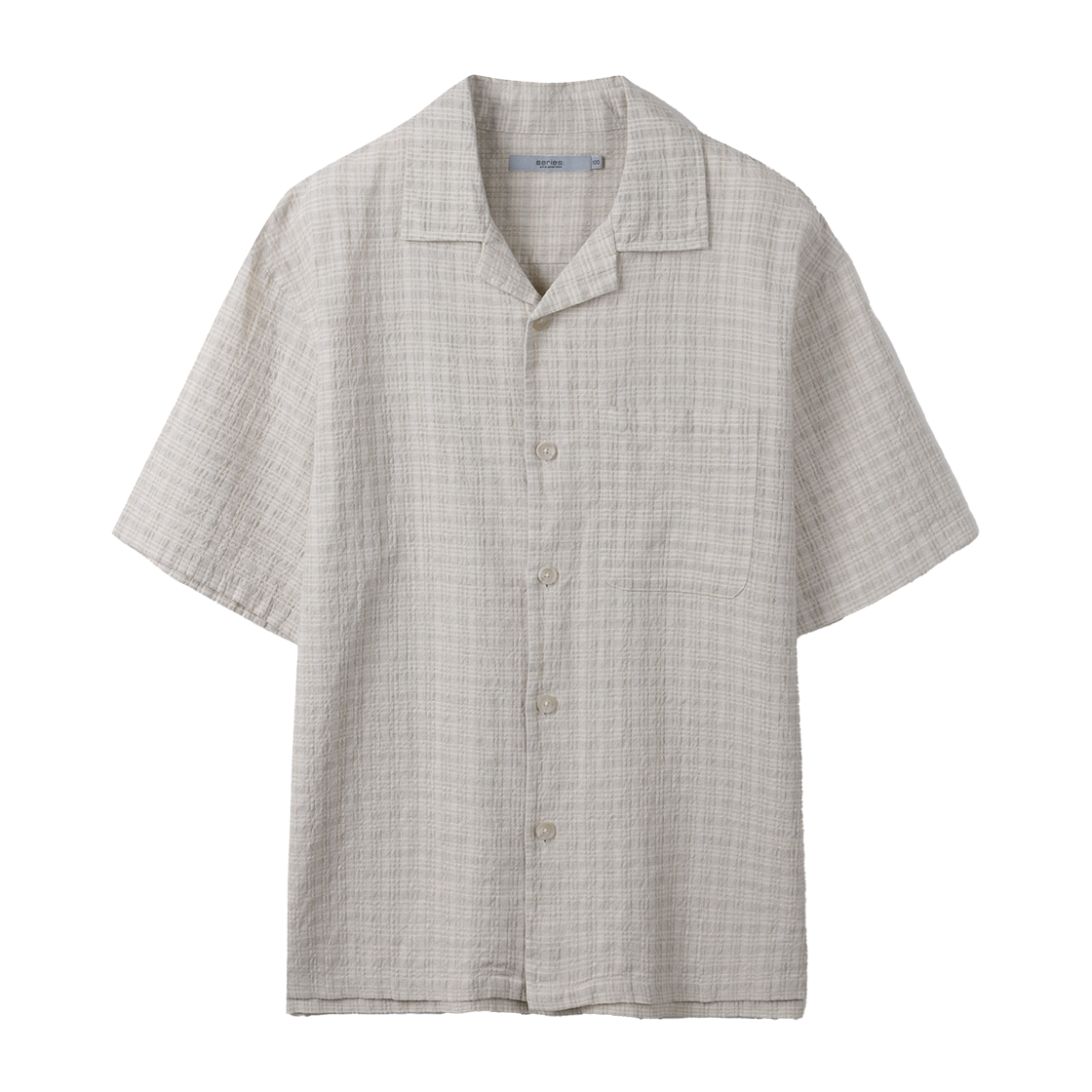 시리즈 코튼 린넨 체크 반팔 셔츠 베이지