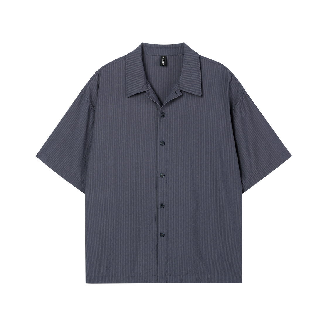 웨슬리휴스턴 크링클 리넨 오픈 카라 하프 셔츠 그레이