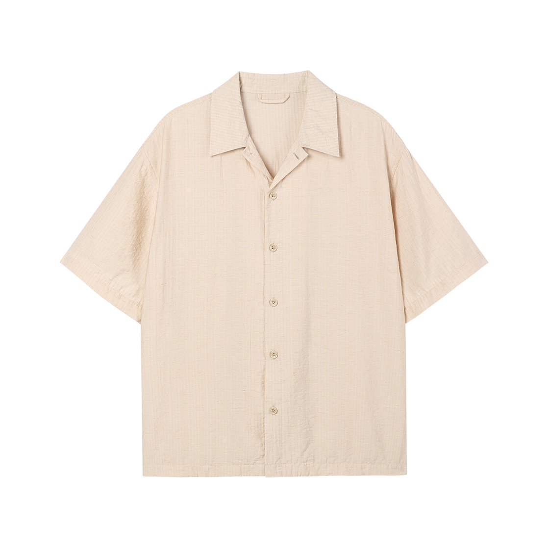 웨슬리휴스턴 헤리티지 스트라이프 리넨 하프 셔츠 라이트베이지