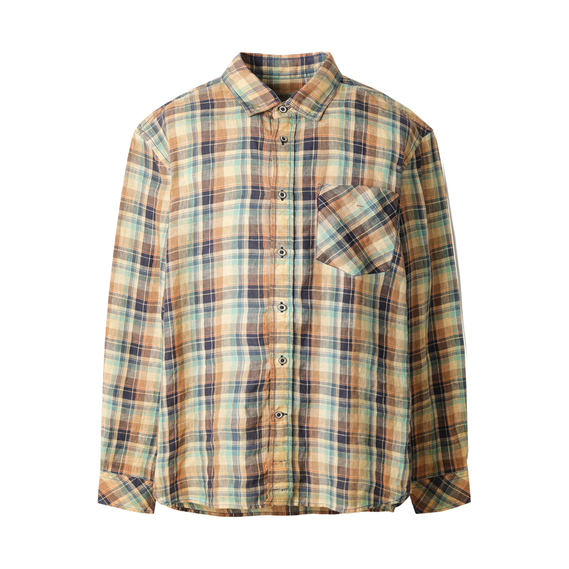 시리즈 린넨 체크 캐주얼 셔츠 오렌지