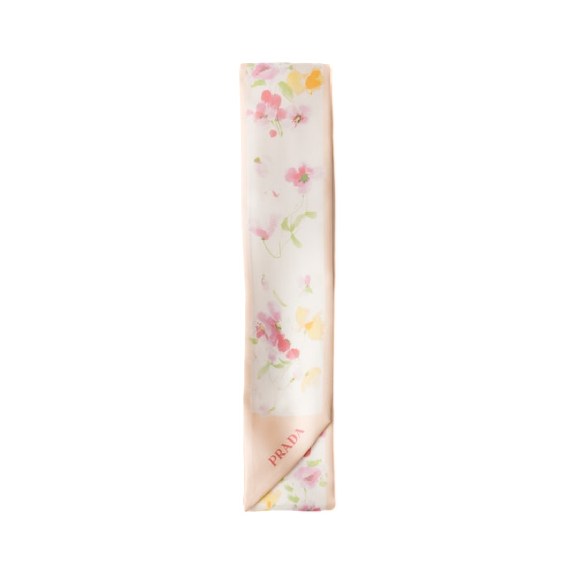 프라다 프린티드 실크 트윌 스키니 스카프 베고니아 핑크 워터 릴리