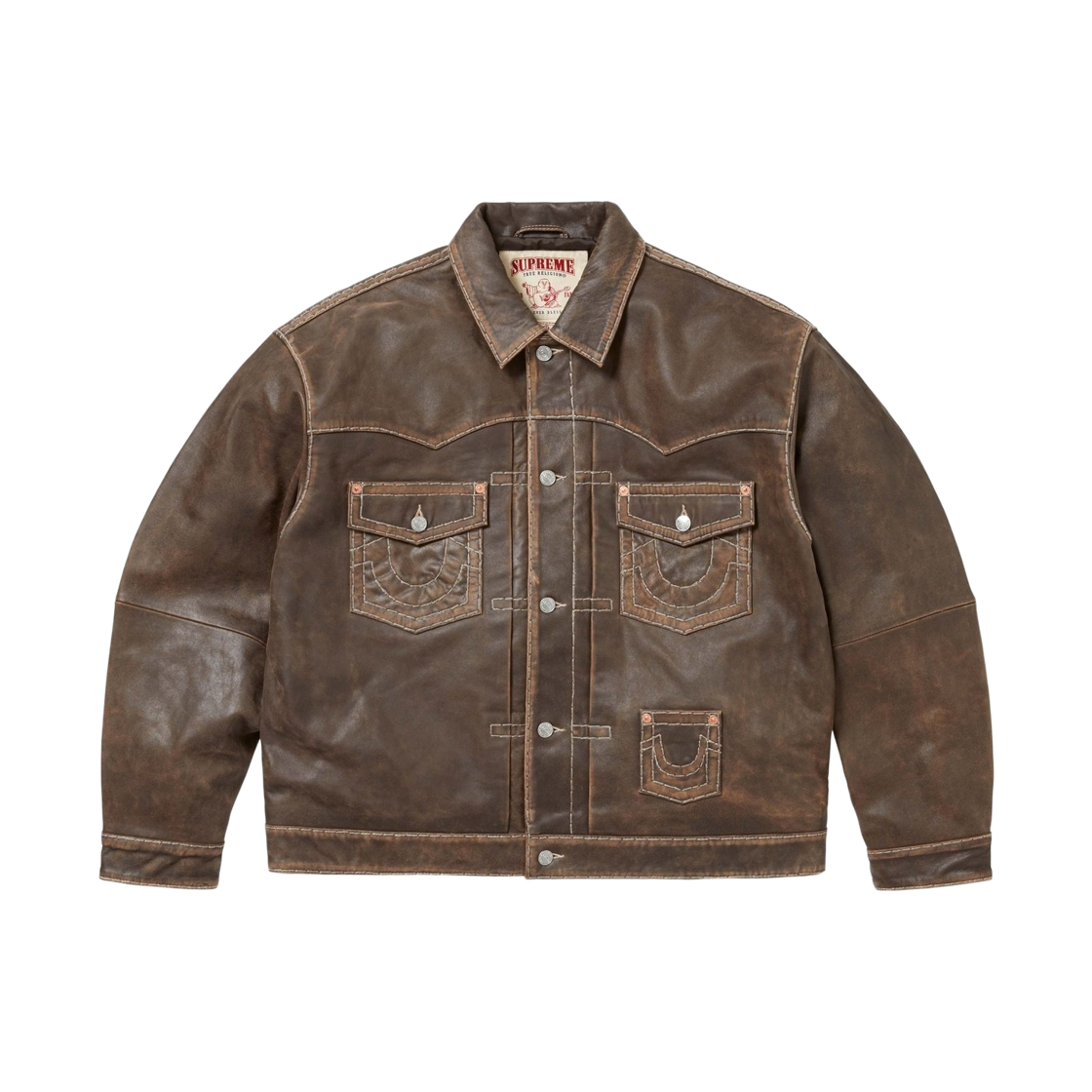 슈프림 x 트루릴리전 레더 트러커 자켓 브라운 - 25FW