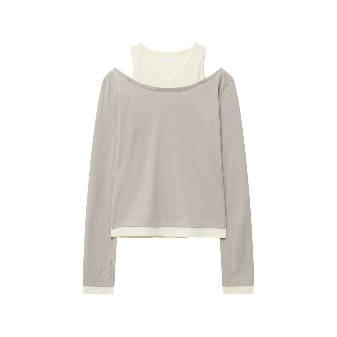 마가린핑거스 레이어드 컷아웃 티셔츠 라이트 그레이