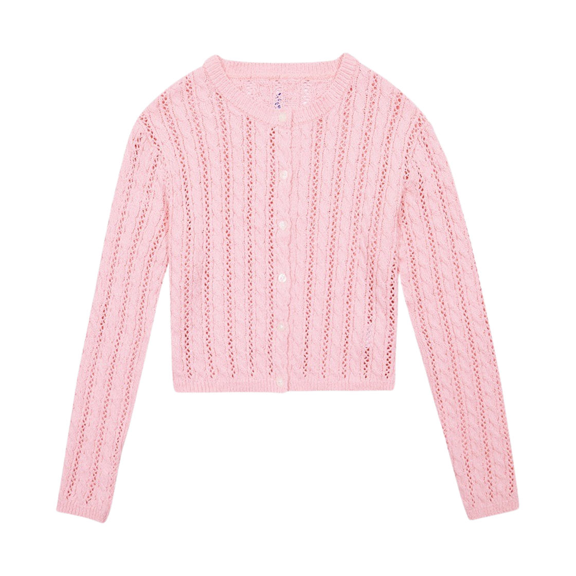 마가린핑거스 하트 버튼 케이블 가디건 라이트 핑크