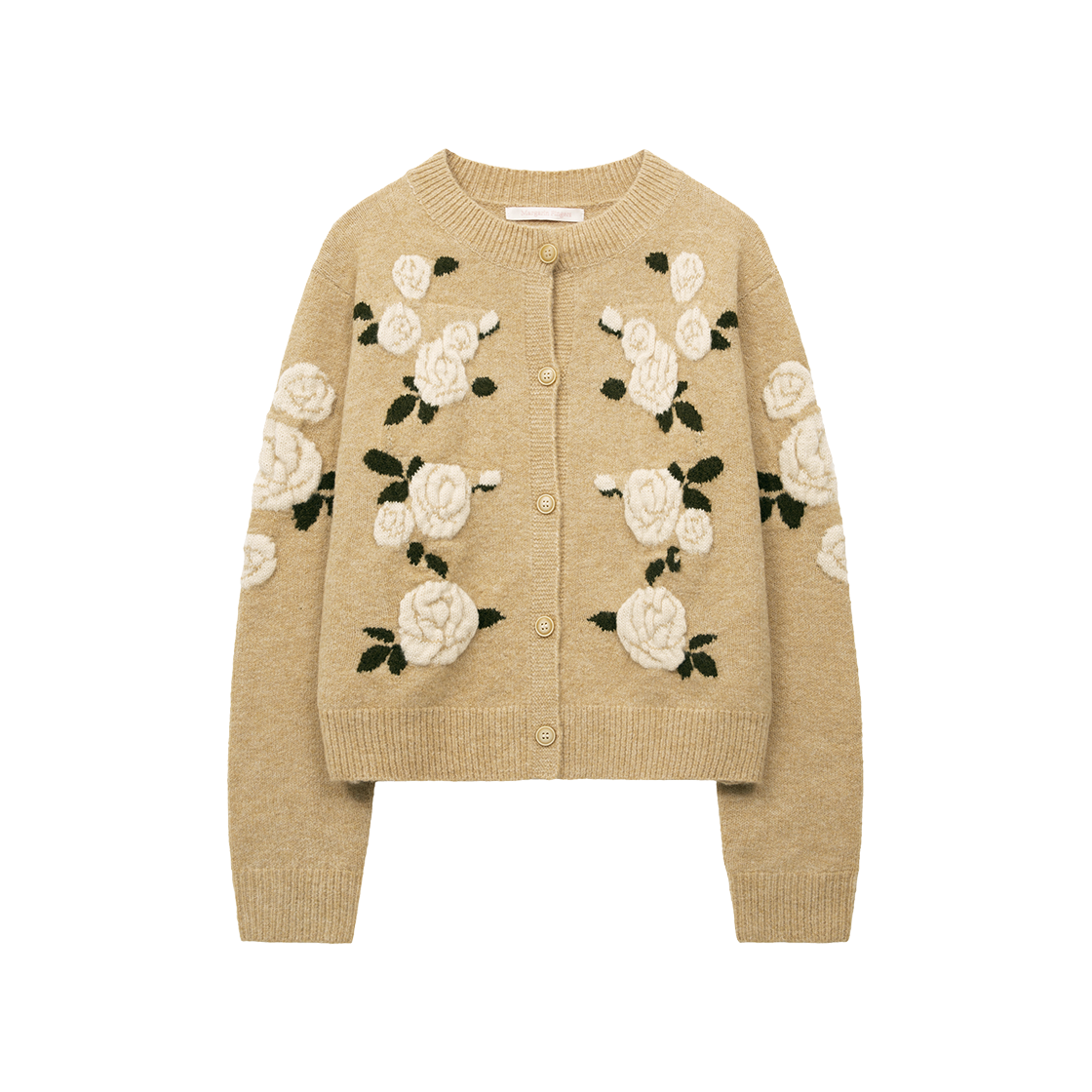 마가린핑거스 로즈 코사지 가디건 라이트 옐로우