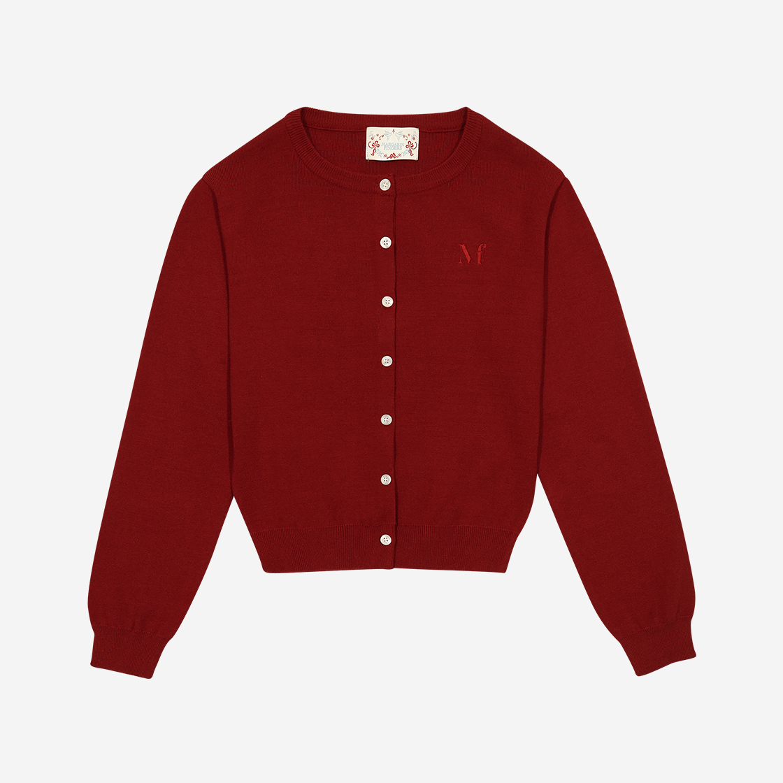 마가린핑거스 로고 플레인 가디건 다크 레드