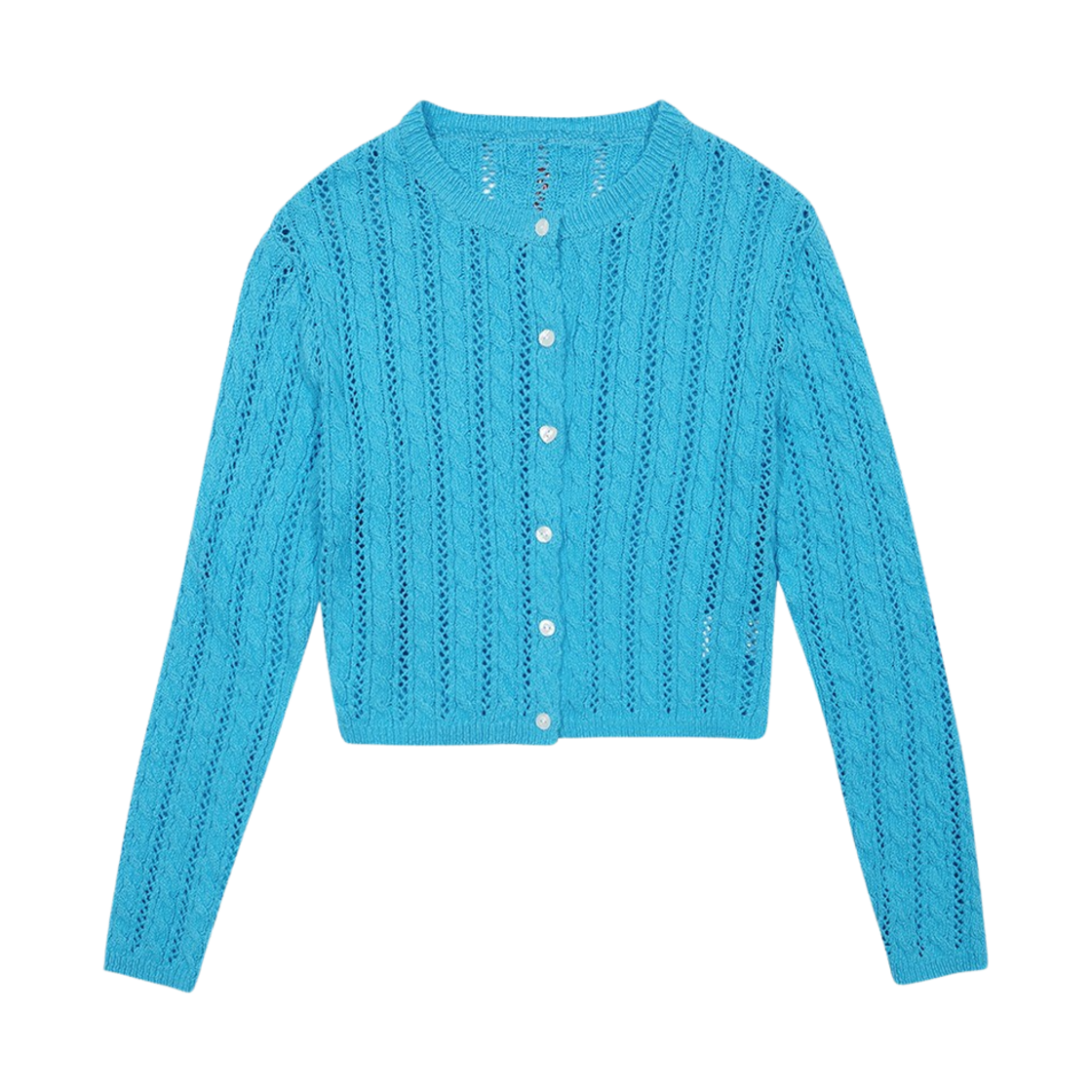 마가린핑거스 하트 버튼 케이블 가디건 아쿠아 블루
