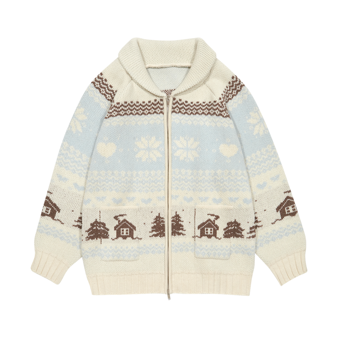 마가린핑거스 램스울 코위찬 니트 집업 크림