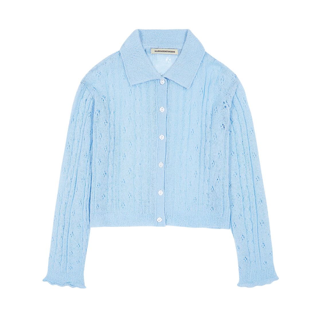 마가린핑거스 로고 스캘럽 가디건 라이트 블루